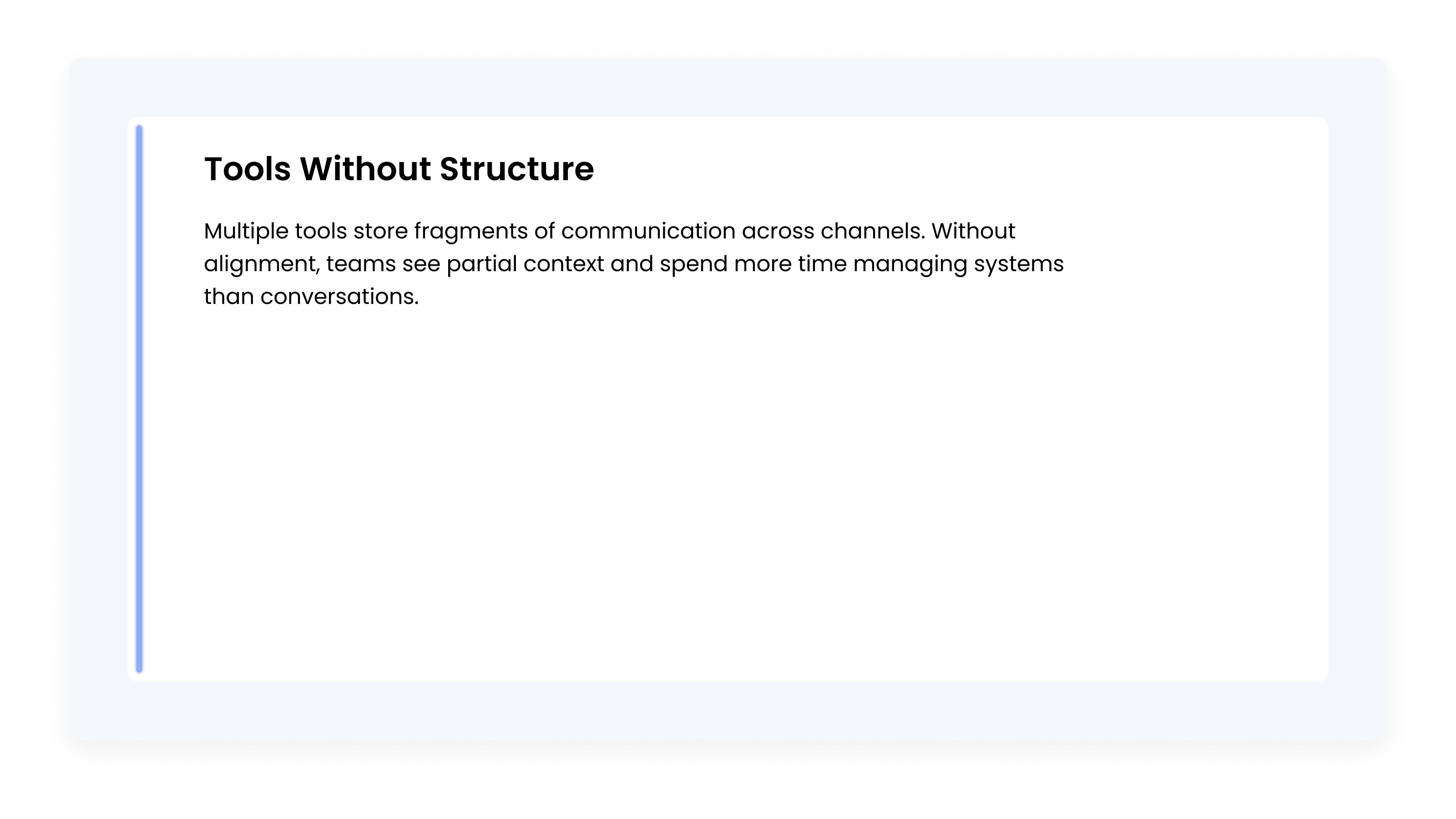 The result is more complexity, not less. That tradeoff sits at the center of The Hidden Cost of Too Many Communication Tools in Growing Businesses, because every added system creates another place where context can split.